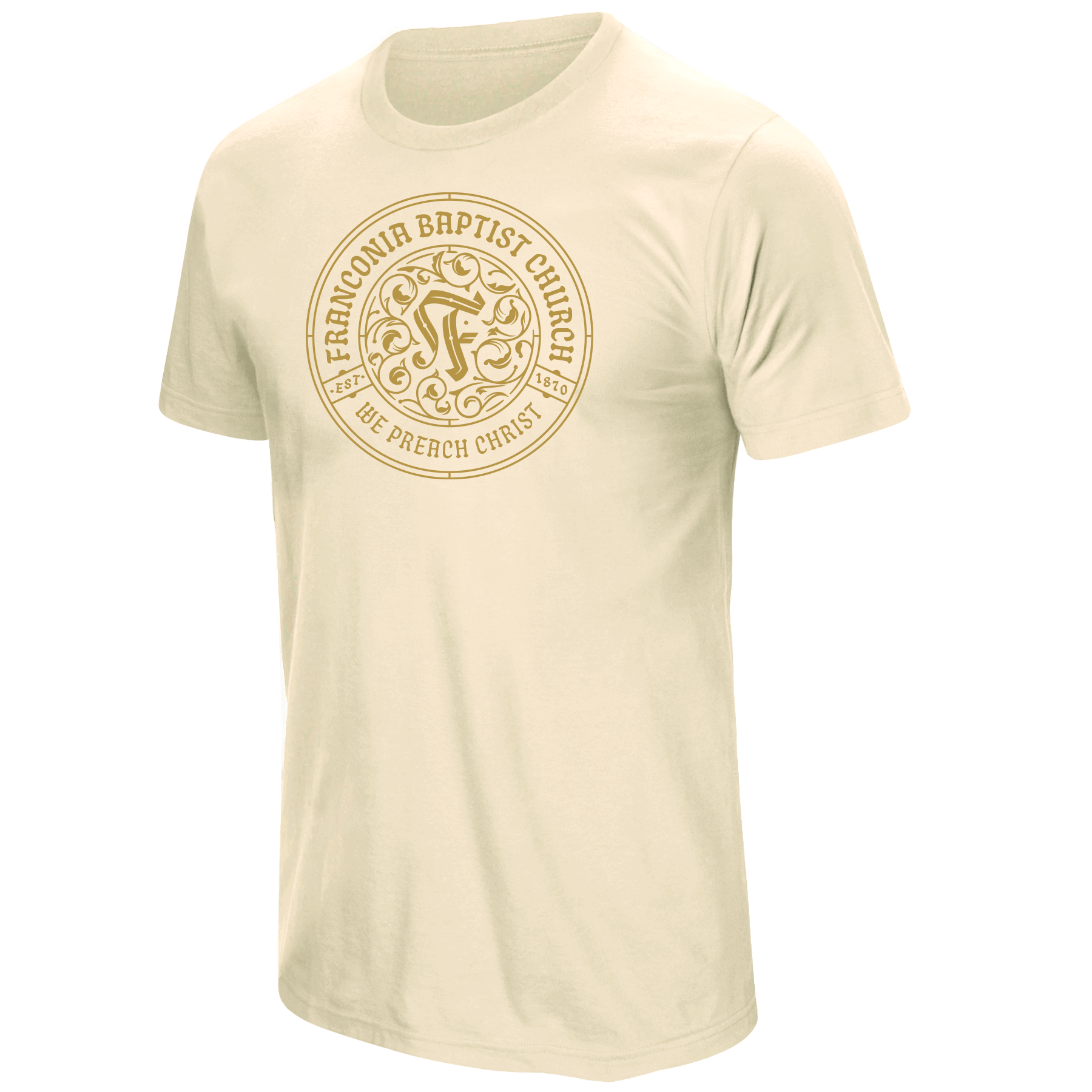 The front features a timeless circular crest with the church name, founding year, and the declaration “We Preach Christ”—a visual reminder of Franconia’s commitment to Christ-centered preaching and the hope of the Gospel. The back neck carries the subtle True Victory mark, tying in quality craftsmanship with a shared passion for living out the faith.