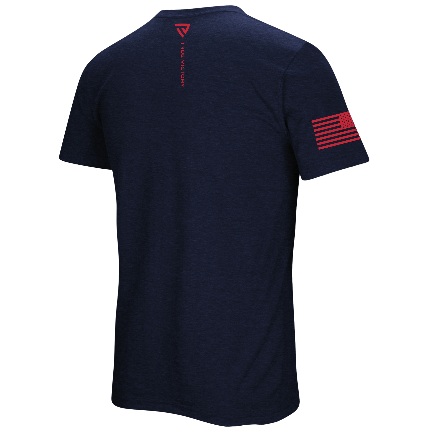 The bold Grey Bull Rescue emblem across the chest captures the power of service and solidarity, while the forward-assaulting American flag on the sleeve and True Victory logo on the back neck serve as enduring symbols of honor and resilience.