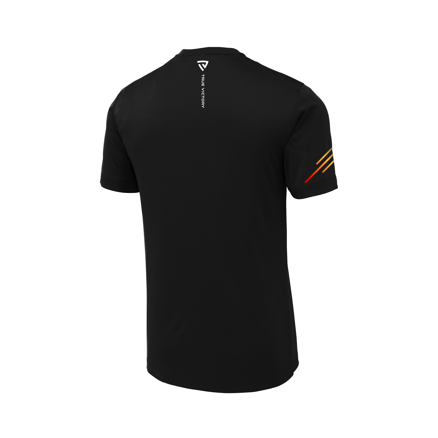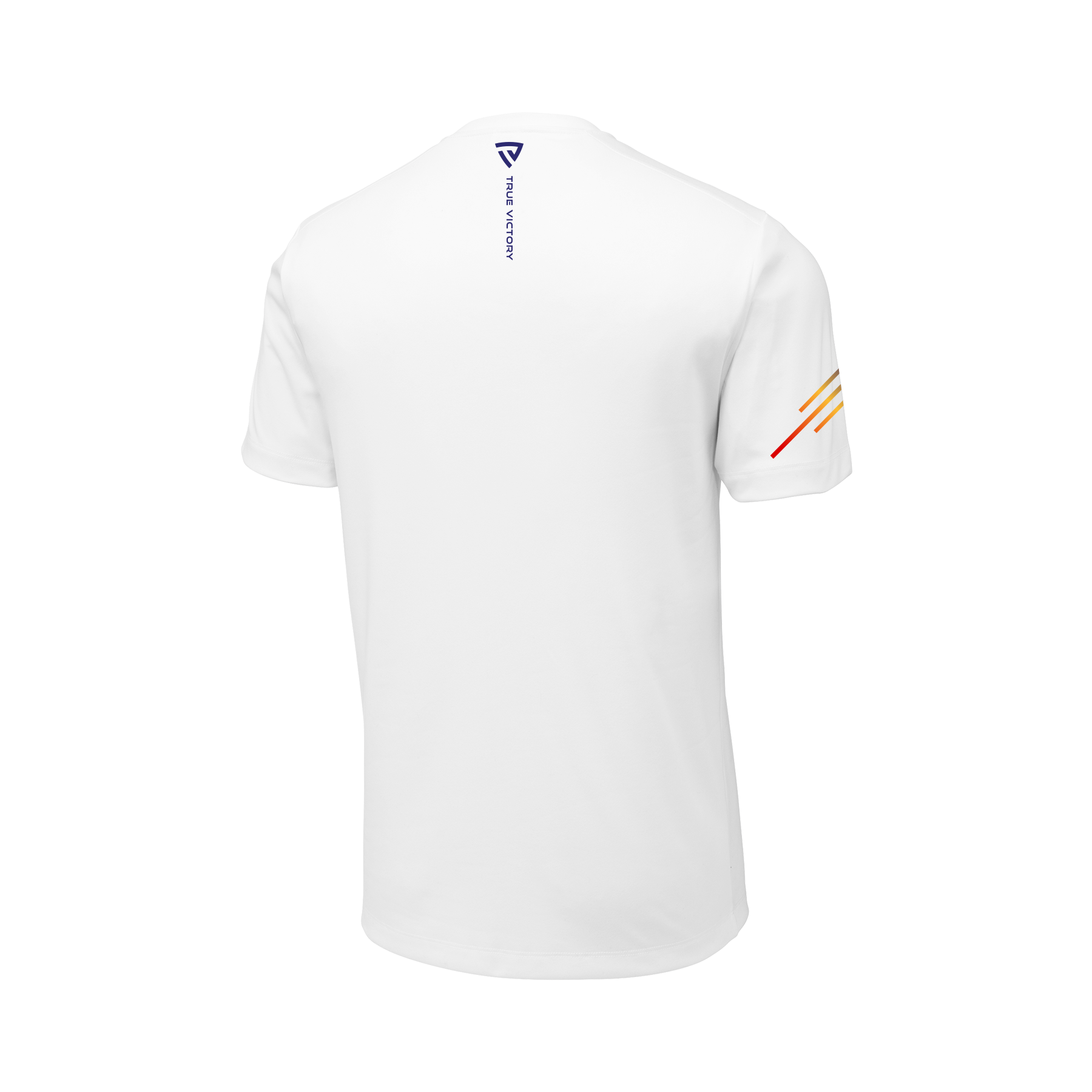 - Features the Vibe logo on front chest and True Victory logo on back neck