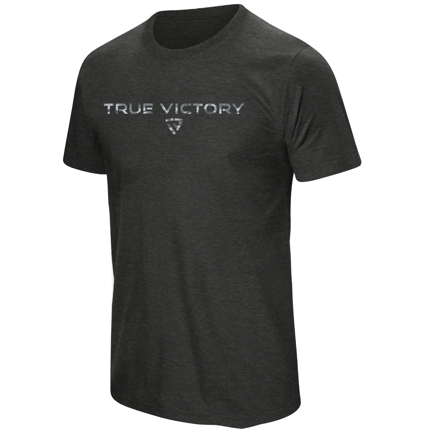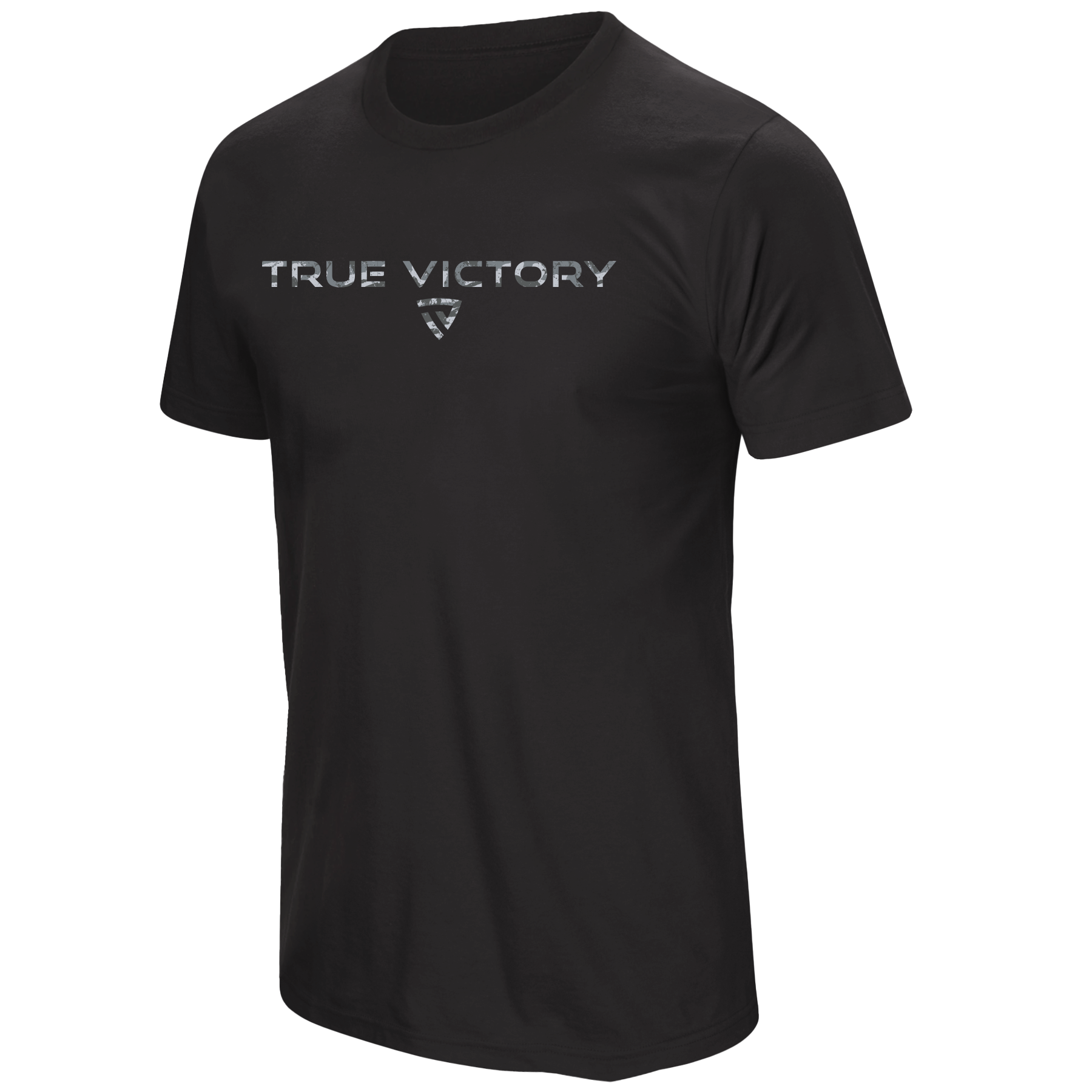 The front proudly displays the TRUE VICTORY wordmark in a rugged urban camo pattern, paired with the signature shield emblem for a clean, disciplined look. Slightly heathered fabric elevates the style while keeping things lightweight and breathable.